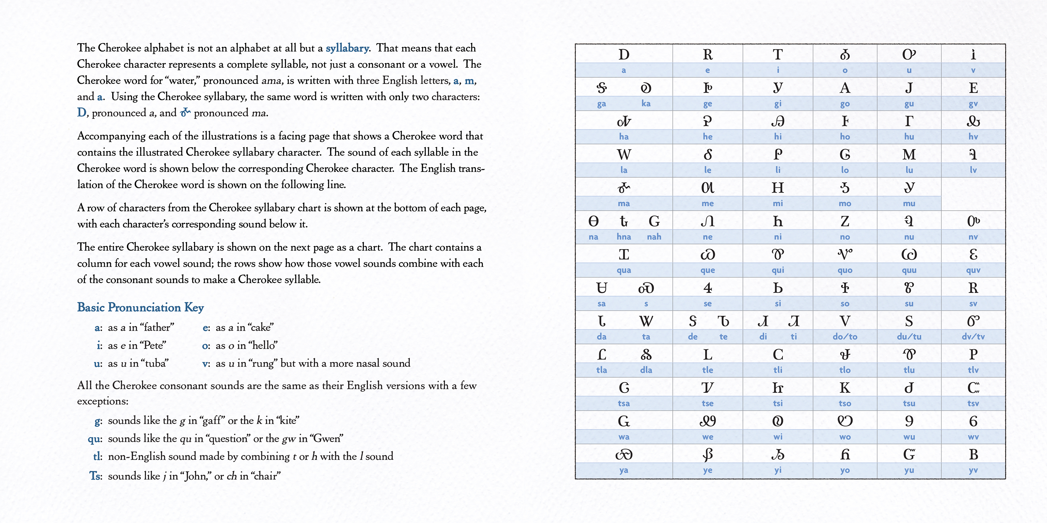 The Cherokee Syllabary: An Illustrated Key to the Cherokee Language is a tool for parents and educators to introduce Cherokee children to the syllabary of their native language. Adults as well can appreciate the simplicity of the format to help become familiar with their Native speech.