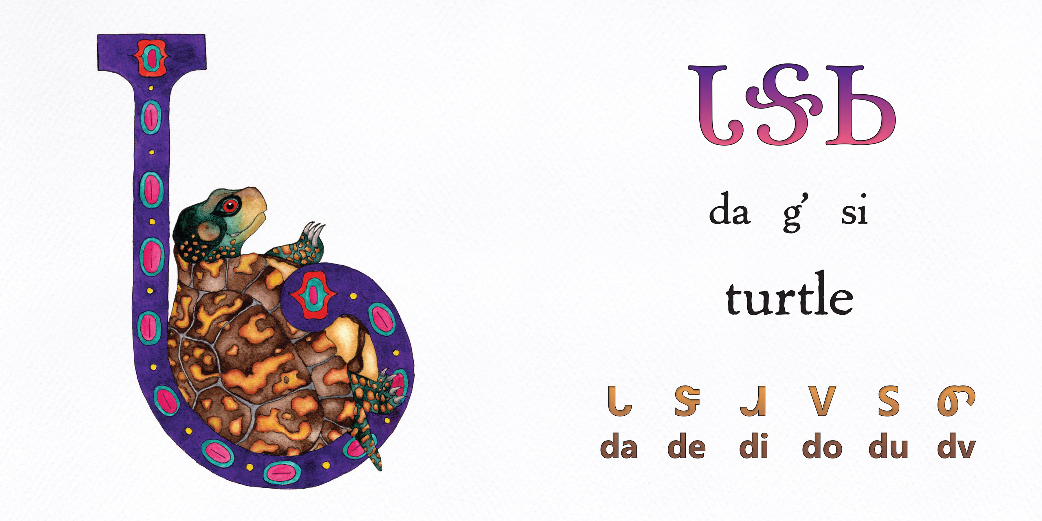 The concept for the illustrations was influenced by medieval illuminated manuscripts. The intent is to allow people of all ages to learn, appreciate and celebrate the historic Cherokee language that was created in written form by Sequoyah in 1891. This book is a valuable resource for schools and libraries by adding multicultural diversity to their classrooms and collections.