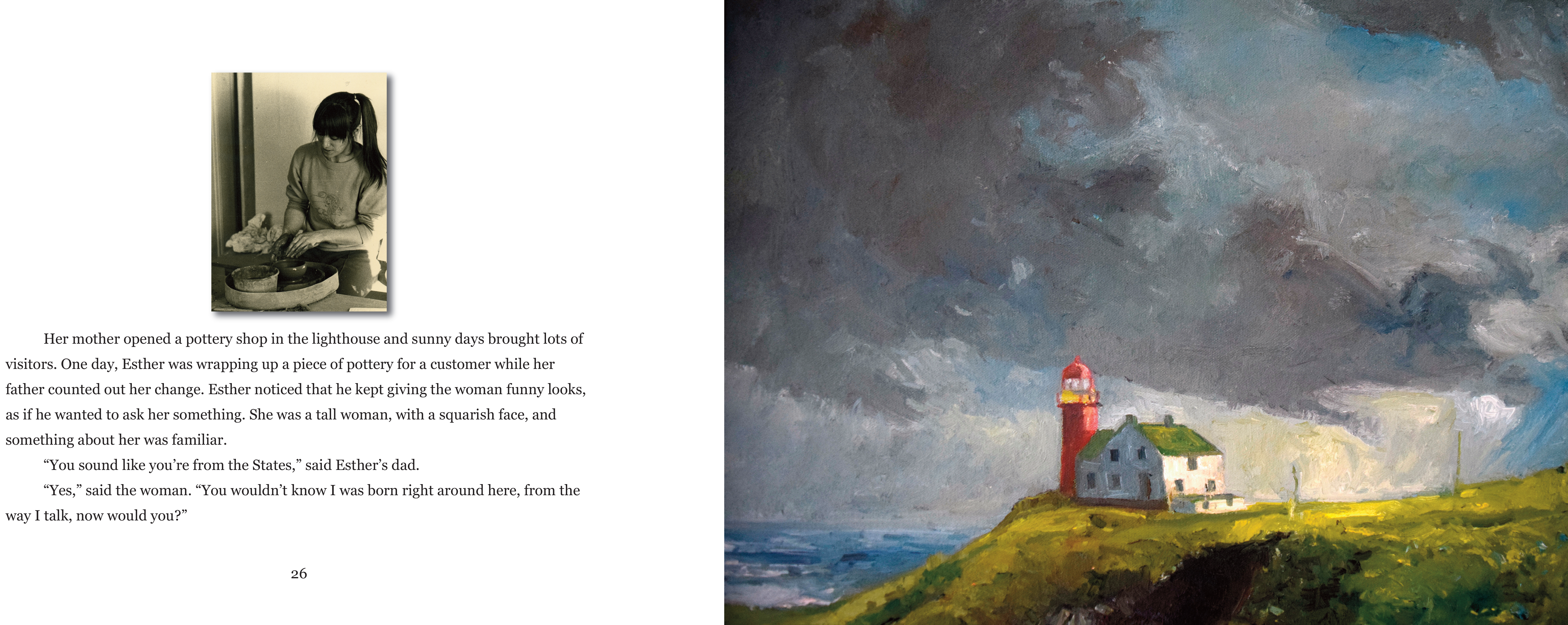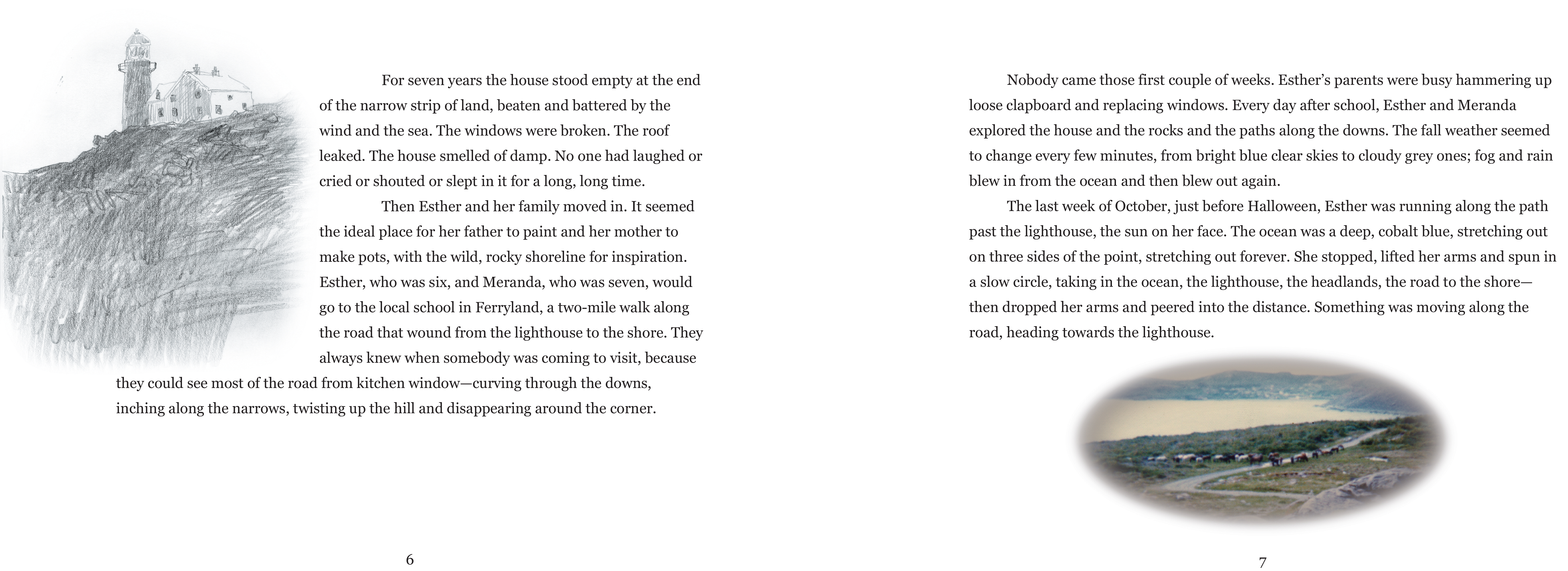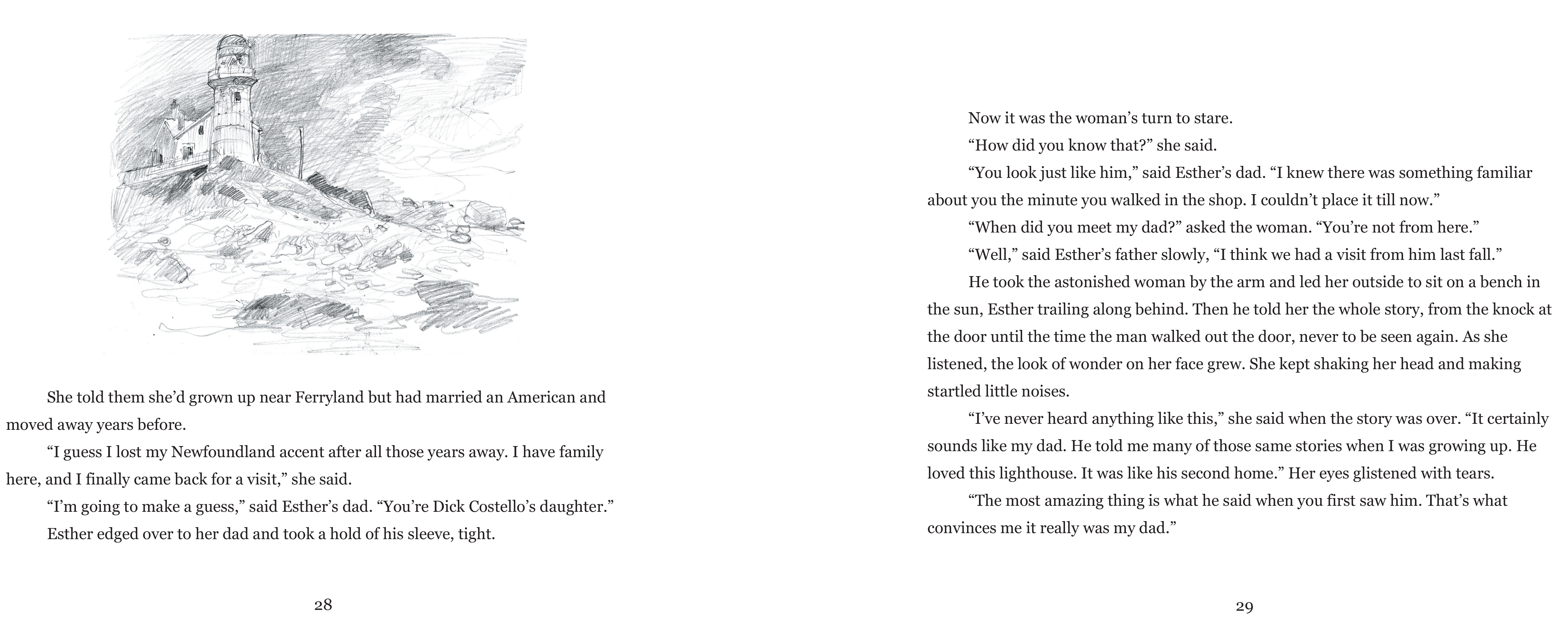 Acclaimed children's writer Charis Cotter tells the tale of this mysterious visitor from the perspective of Esther, the youngest daughter. In beautifully crafted language, Cotter captures the delight of a curious young girl discovering her new landscape, the excitement of living in a lighthouse at the edge of the ocean, and the haunting mystery of the visitor himself. Renowned artist Gerald Squires contributed paintings and drawings of the lighthouse and its surrounding landscape, as well as family photographs taken during the lighthouse years. The result is a book of striking beauty—part family album, part art book, all mystery.