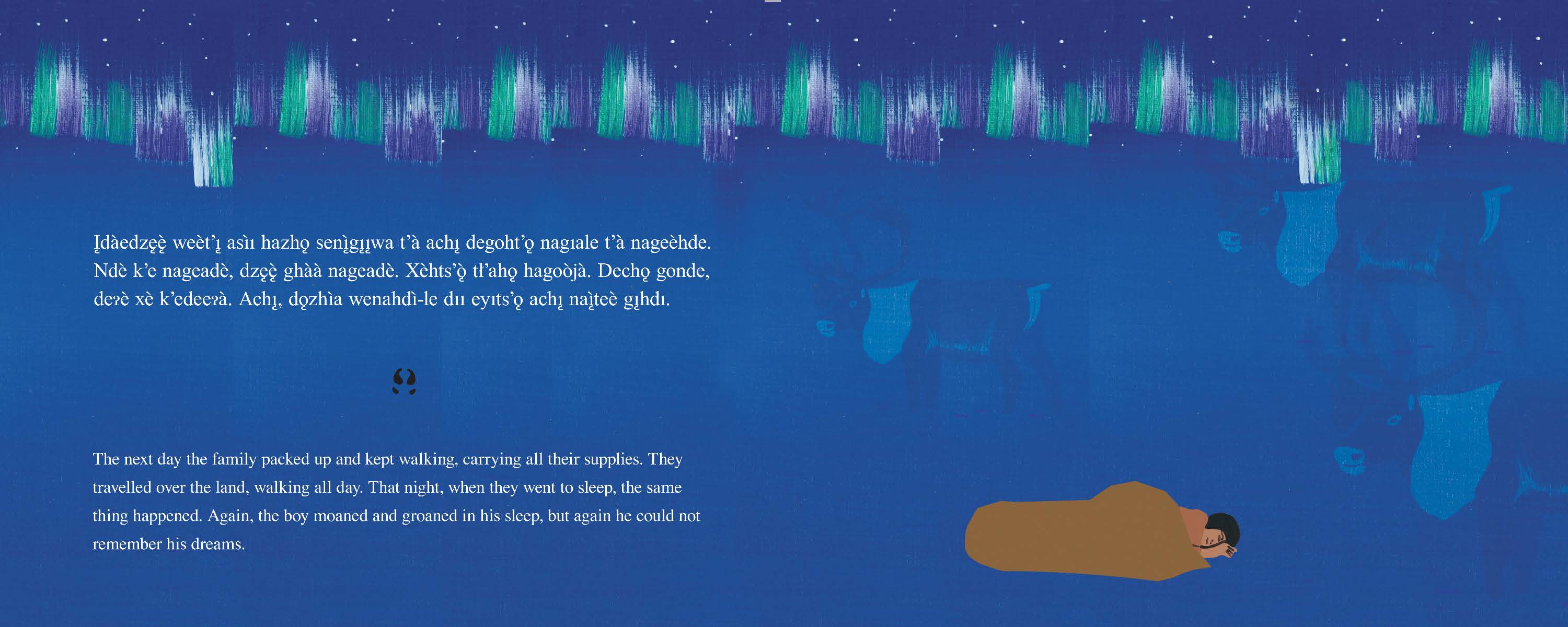 A young boy is having trouble sleeping at night. he is being called to fulfill his destiny, a destiny which lives on today in the traditions and culture of the Dene people and their relationship to the caribou and the land on which they live.