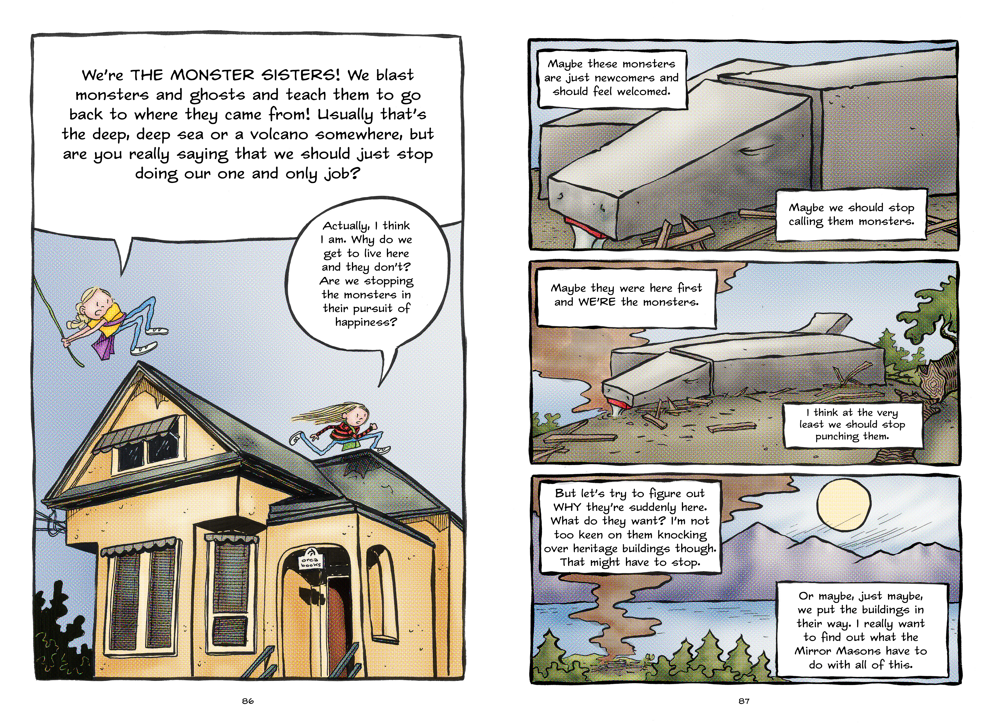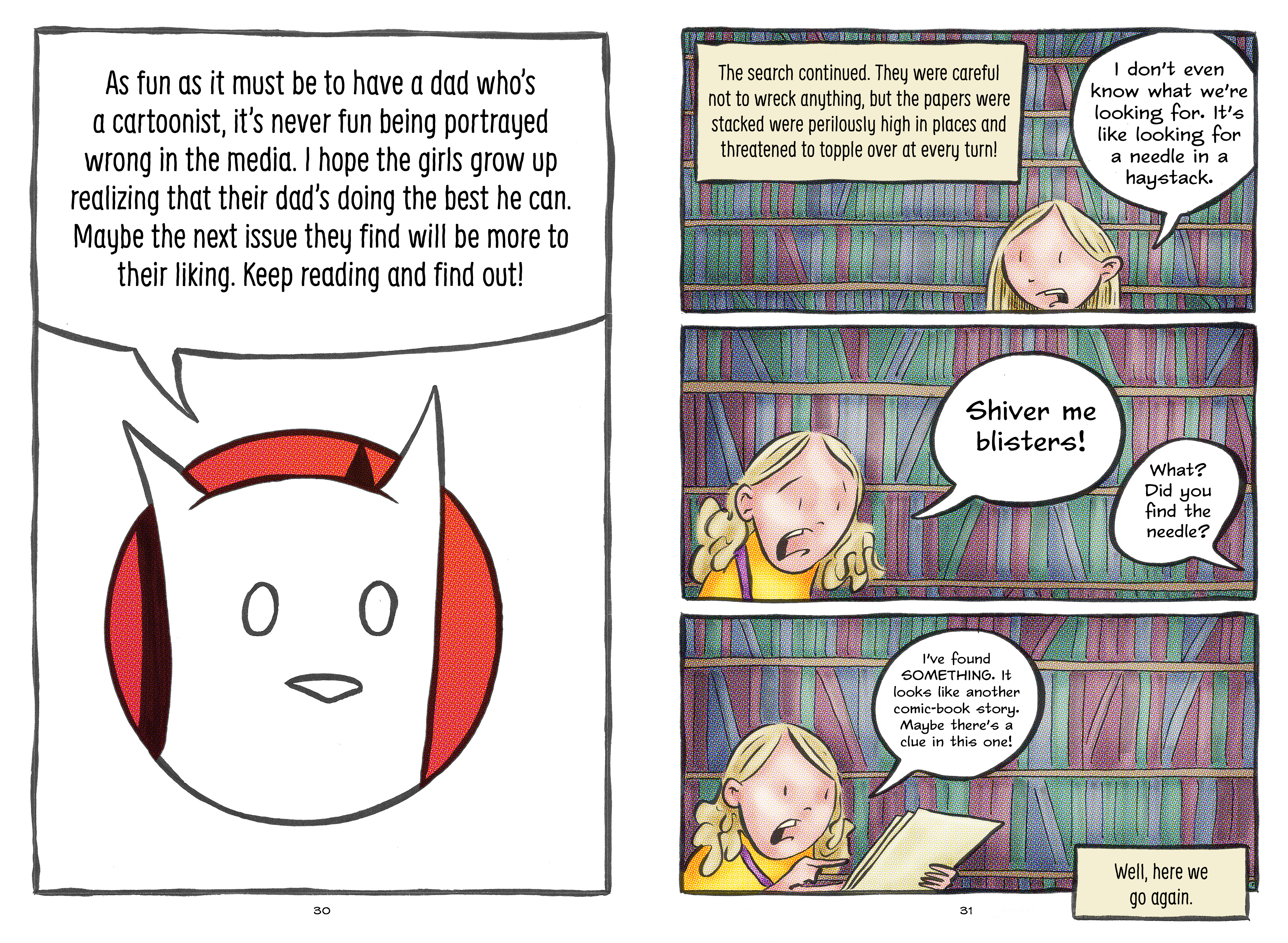 In the final chapters of their story the Monster Sisters delve deeper into the meta-narrative of their lives when they find comic books starring themselves on their father's desk.