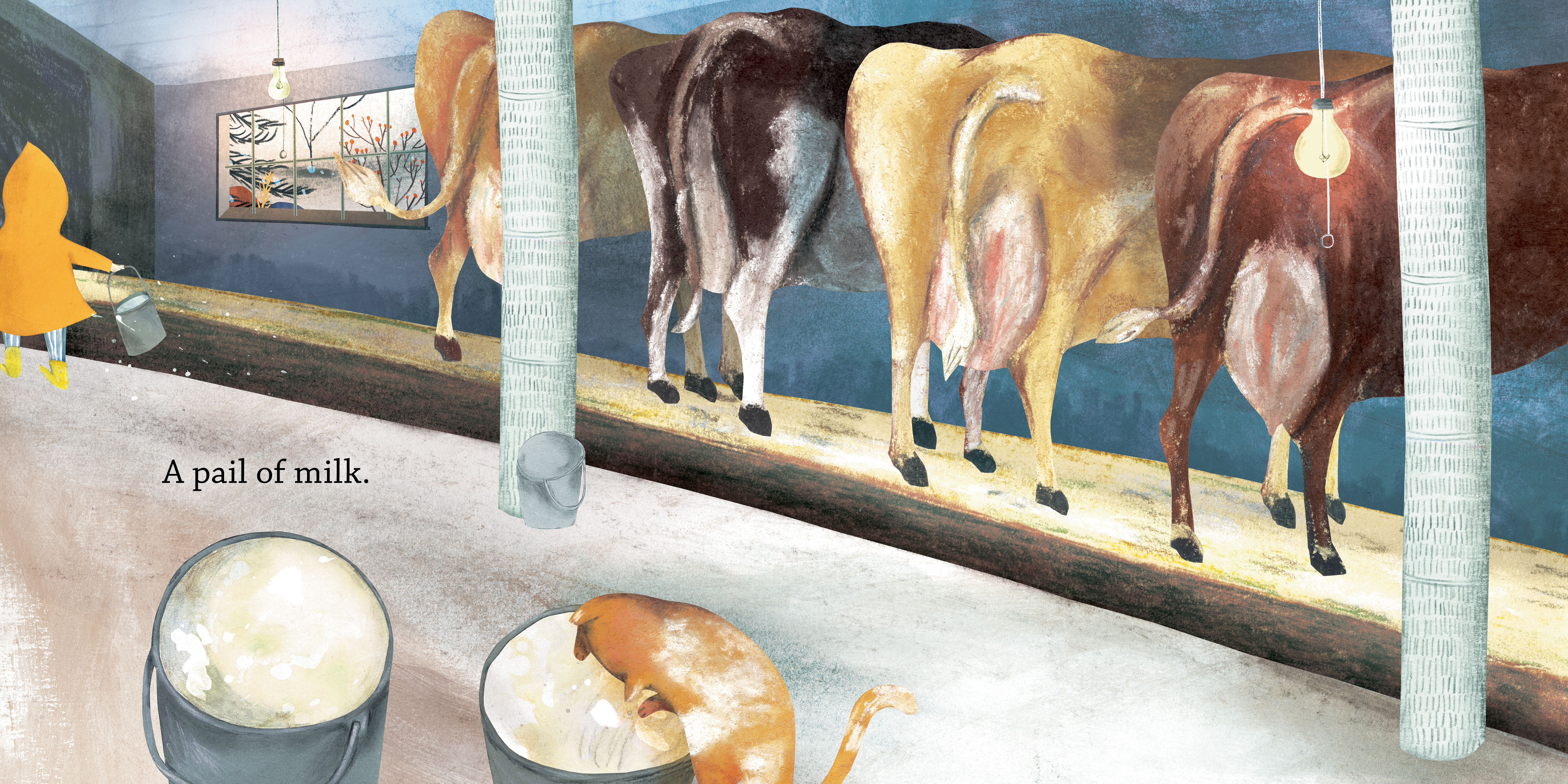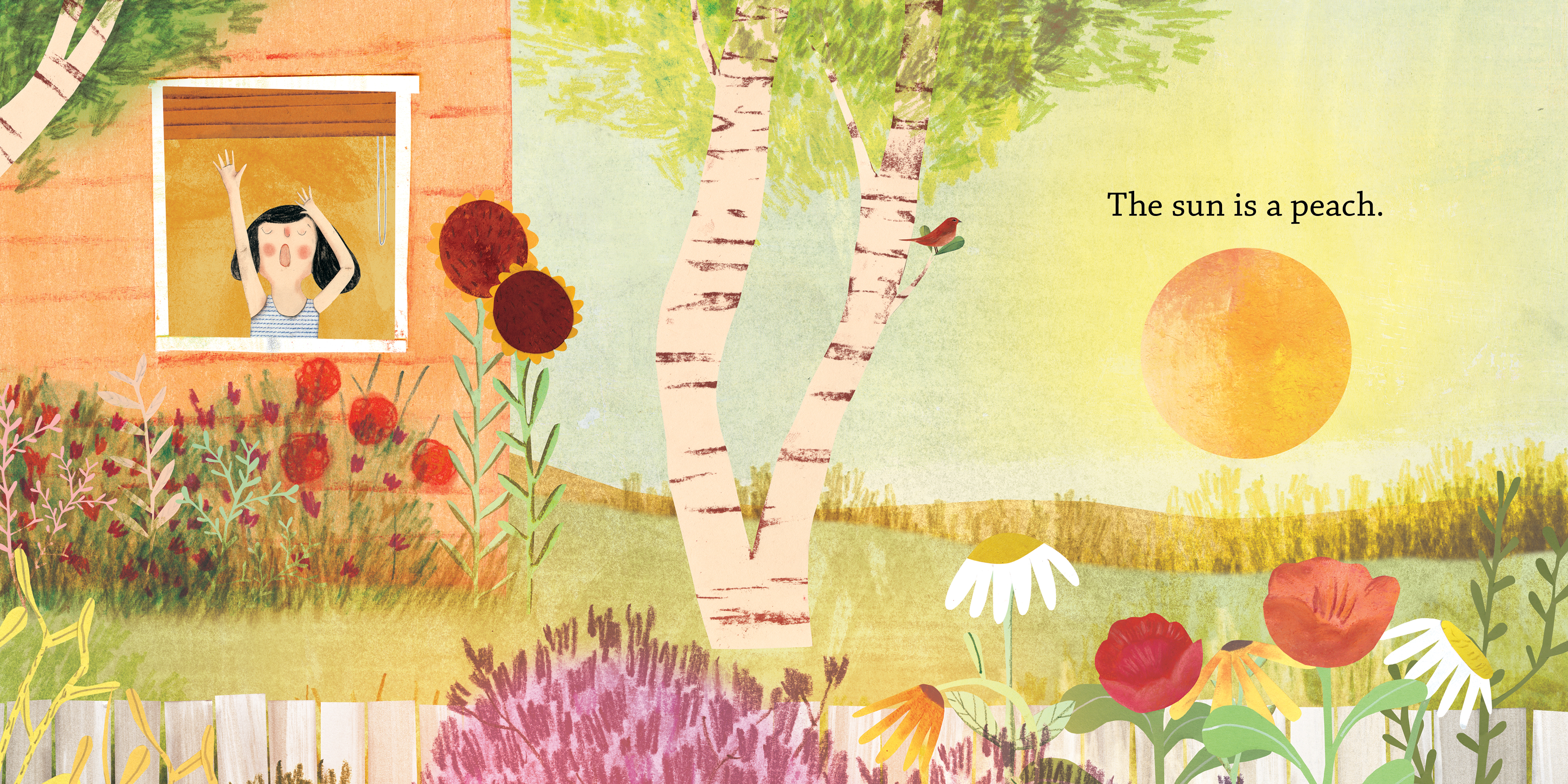 A young child skates, bakes and milks the cow while the moon wondrously transforms above. That moon is a silver pond when seen through the trees, and when they tend the cow, the moon is the milk at the bottom of the pail. Flip the book and join a young child walking along a country road into town to watch a parade. The sun takes the form of the yolk of an egg, a spool of thread, the eye of a bird, an ice-cream cone and a dandelion. Each round, a yellow item on the page hints at the big golden ball in the sky. With stunning illustrations by Josée Bisaillon, this picture book shows children that the way they see the world—by heart, mind and imagination—is just right.