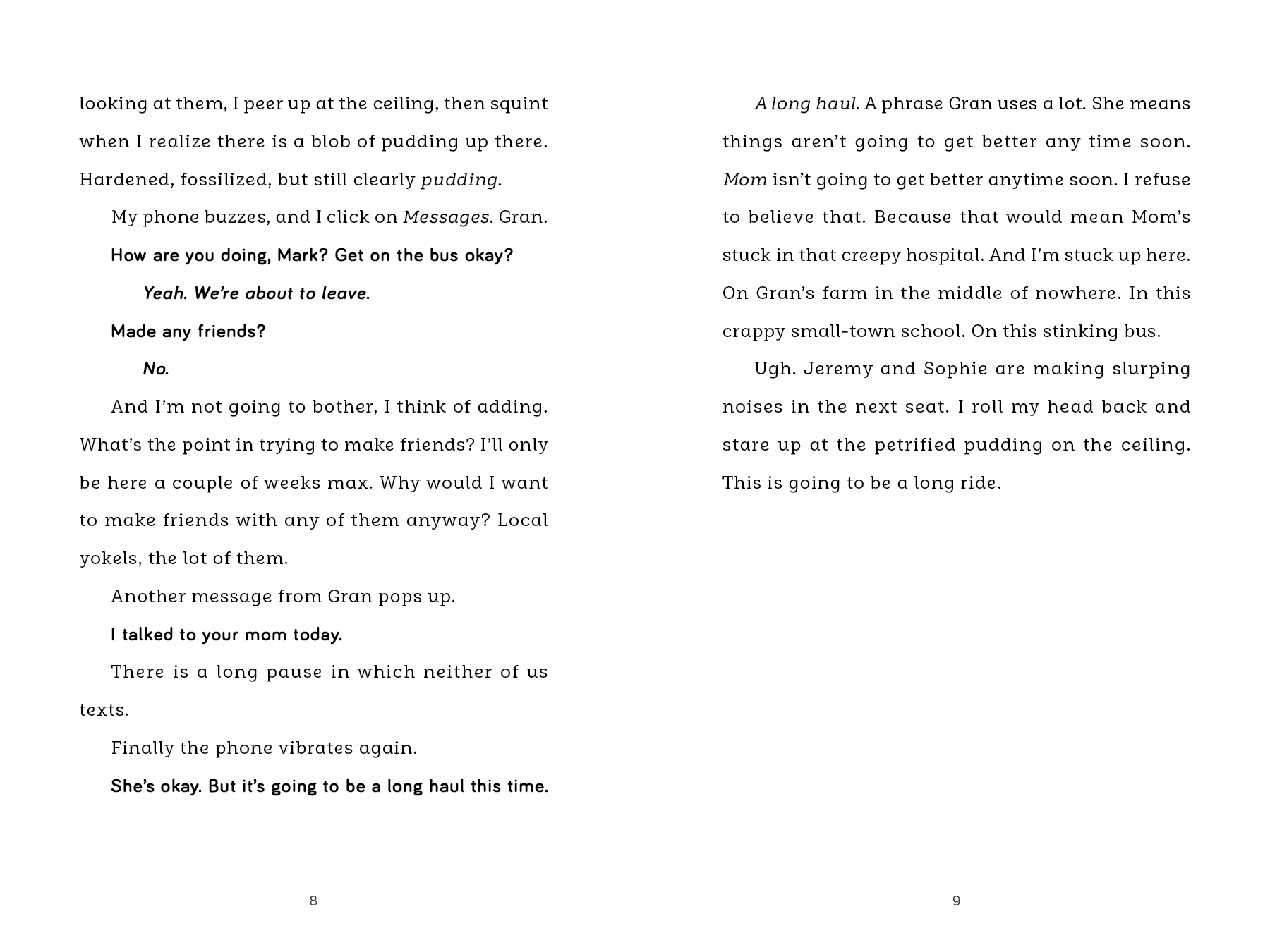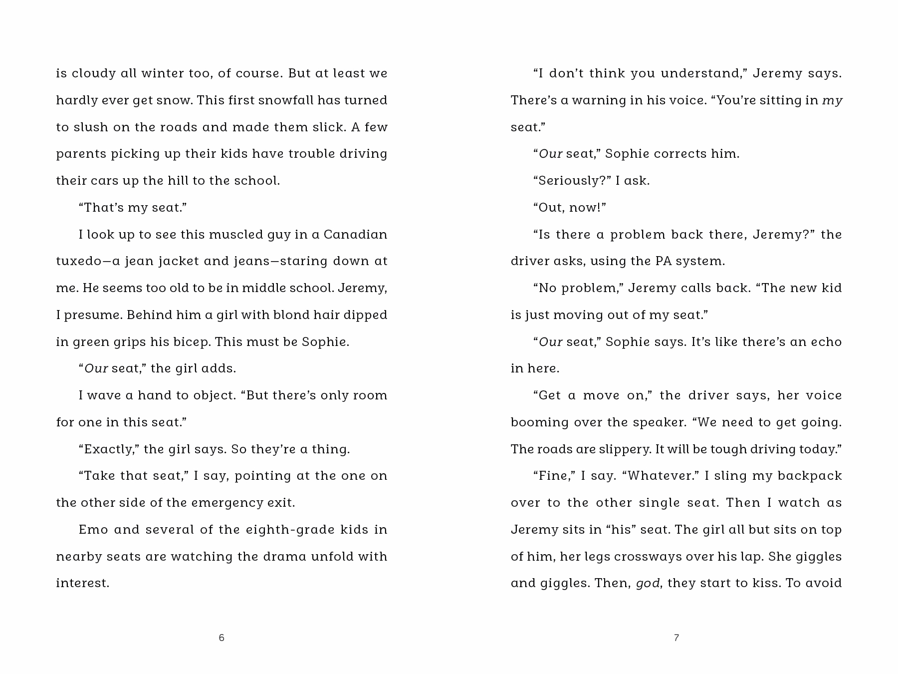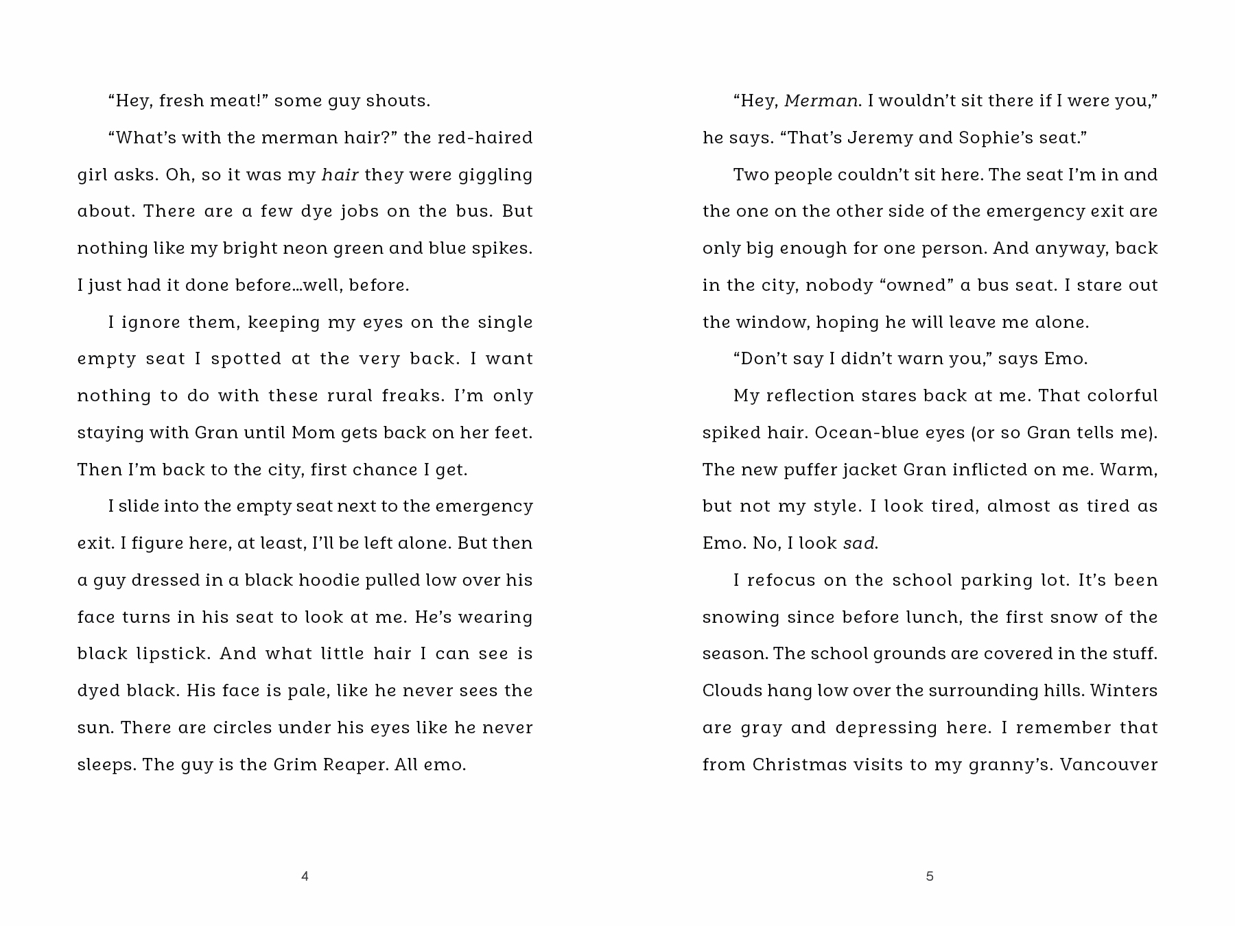 Mark has to take a school bus home for the first time. The long, noisy ride home is nothing like riding city transit. There’s some kind of secret code of knowing where you’re allowed to sit, the kids scream nonstop and someone even tries to set Mark’s seat on fire. He quickly decides that all these kids are too strange and does his best to avoid them. But when tragedy strikes, Mark learns that he has more in common with these country kids than he had ever imagined.