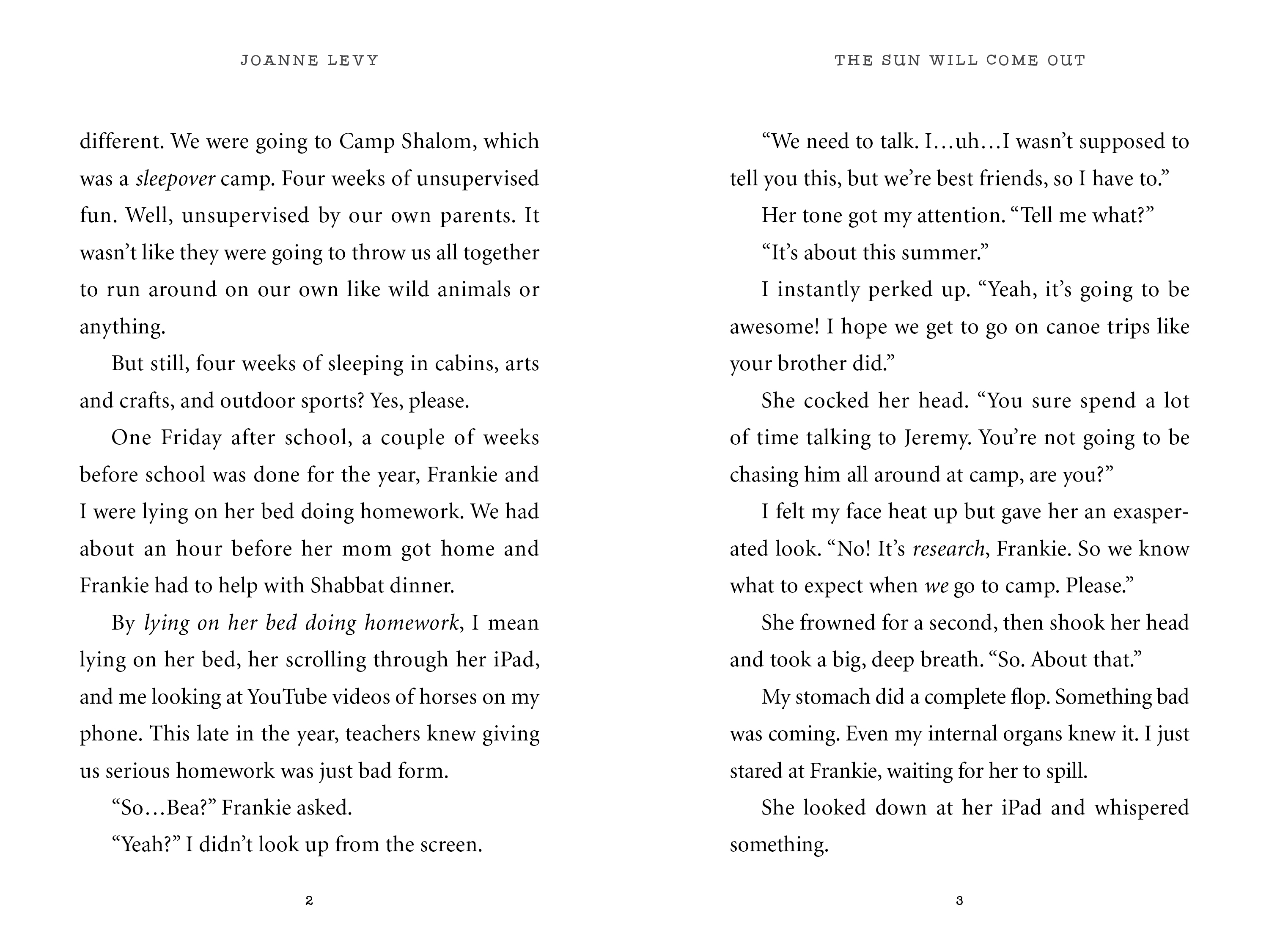 Twelve-year-old Bea Gelman and her best friend Frankie are planning the BEST SUMMER EVER at Camp Shalom—a sleep-away camp. But at the last minute, Frankie bows out, leaving painfully shy Bea on her own. Just talking to strangers causes Bea to break out into ugly, blotchy hives. As if the hives weren't bad enough, Bea gets pranked by a couple of girls in her cabin and is betrayed by someone she thought was a new friend. Bea has had enough! She decides to spend her summer in the infirmary far away from everything that’s stressing her out. No more boys (including her crush, Jeremy), no more horrible mean girls, and no more fake friends! At the infirmary, Bea meets Harry, a boy facing challenges way more intense than stress breakouts. Inspired by Harry’s strength and positive outlook, Bea decides to face her fears—in a big way.
