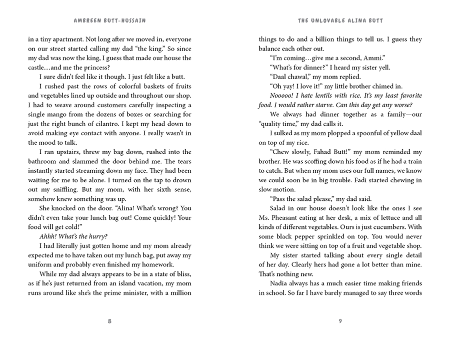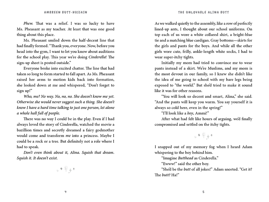 Eleven-year-old Alina Butt has changed schools four times already since her family moved to England from Pakistan. Even after all that practice, she doesn’t seem to be getting any better at being the new kid. Mocked for her last name and her "weird" lunches, Alina has had enough! Taking a leap of faith to try and stand out for the "right" reasons, Alina auditions for the school play. Her hopes of landing the lead role in Cinderella are dashed when her new friend gets the part of Cinderella instead...and her bully is cast as Prince Charming!