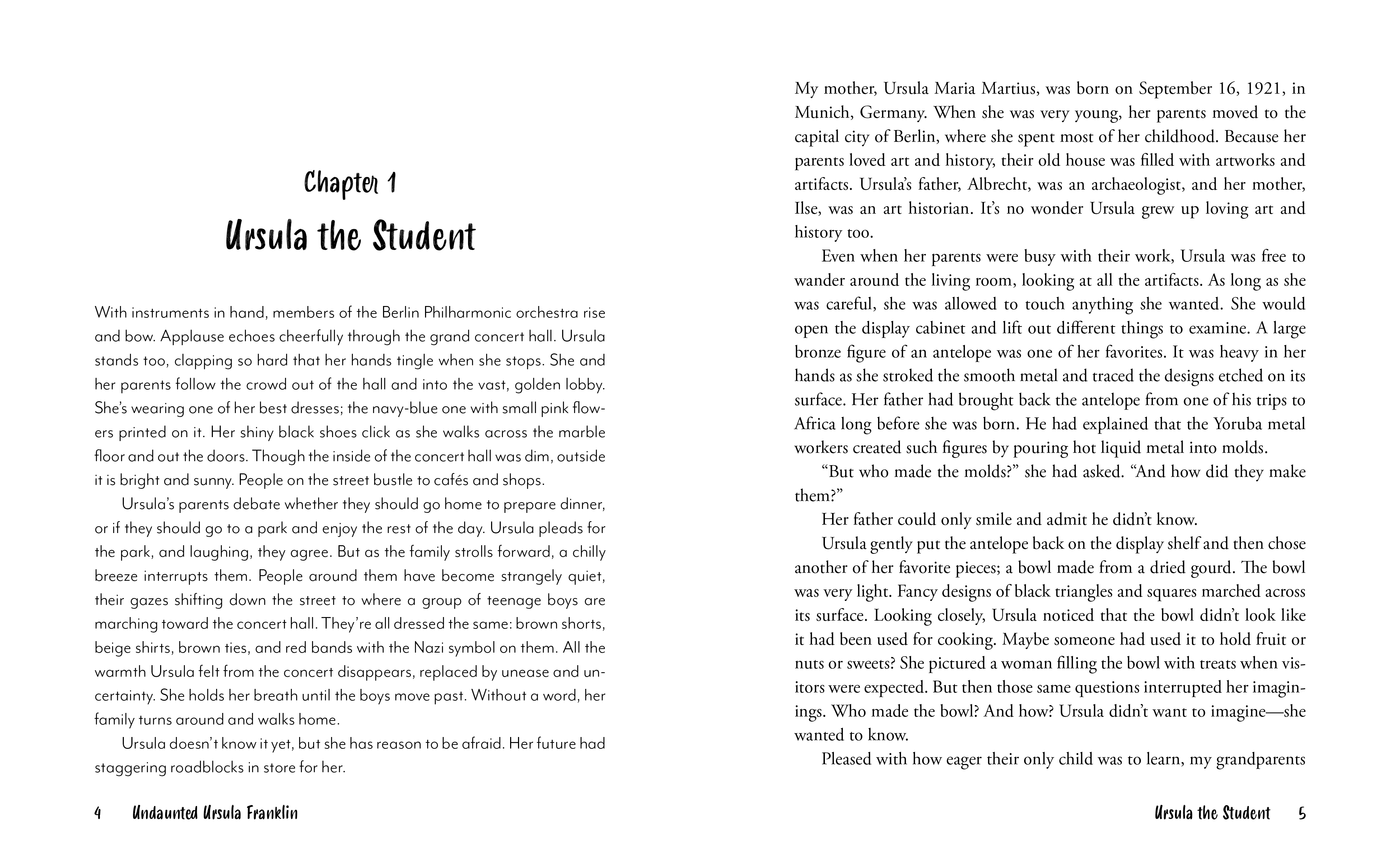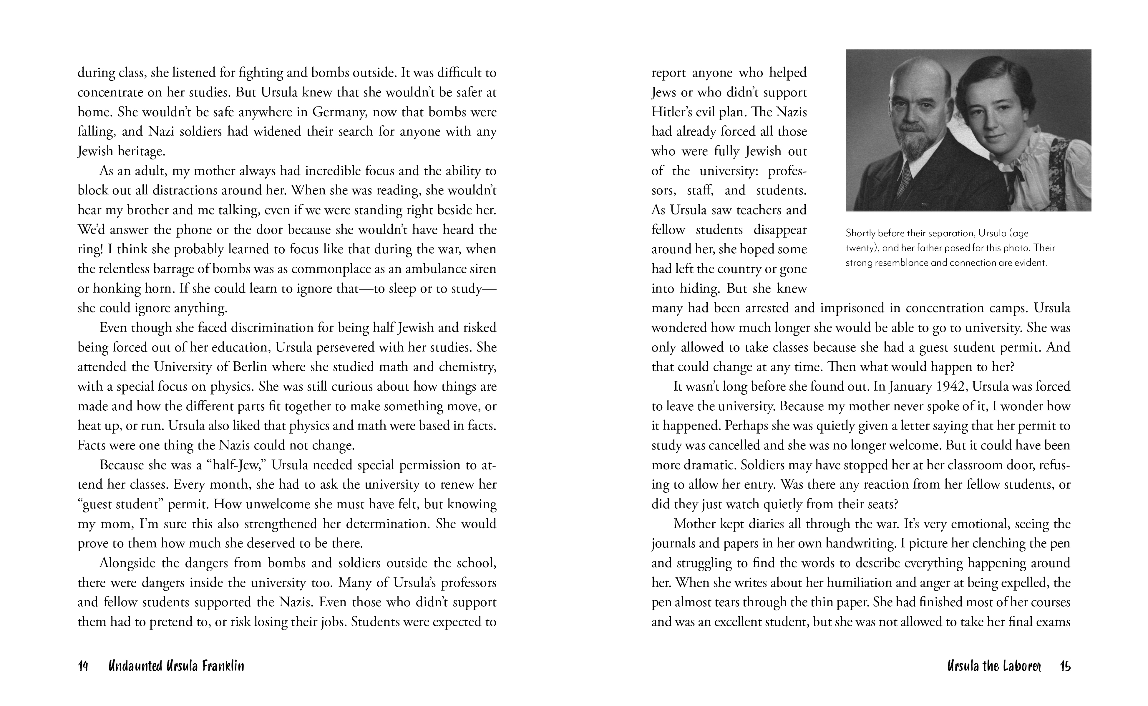 Ursula Franklin was a brave and brilliant woman. Born in Germany with Jewish ancestry, she survived the Holocaust while many in her family did not. She became a physicist and an engineer at a time when women were not welcome in academics. These experiences shaped Ursula, and she went on to stand up for equality, for peace, and for the protection of the environment and the vulnerable throughout her life.