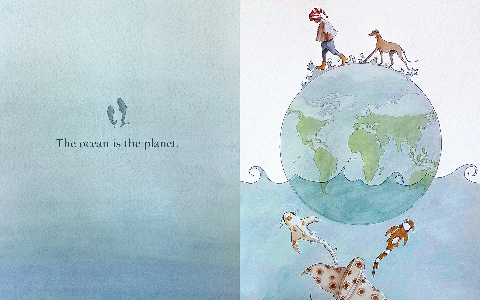 We Are the Ocean helps children discover a personal connection to water. The author beautifully describes the importance of the ocean in sustaining life of all living plants and animals. Through the eyes of children with their doggie companions, the question of “what is the ocean?” is answered.