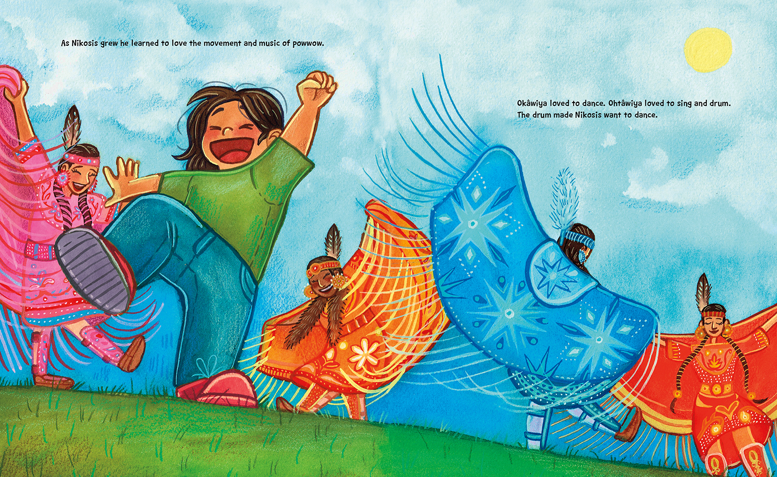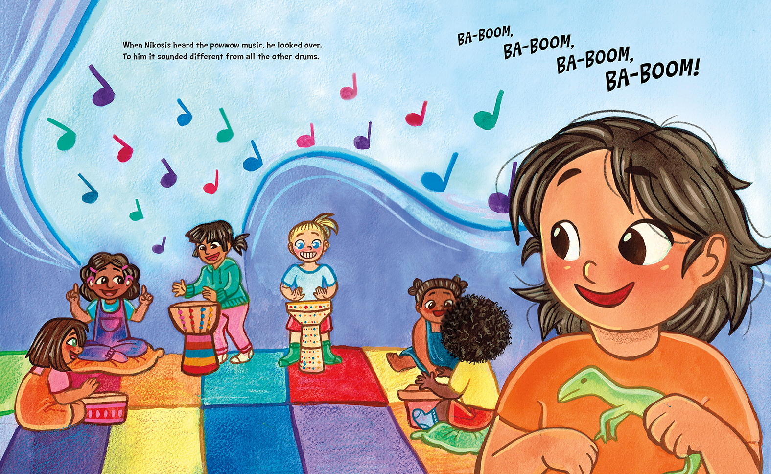 Nikosis grew up going to powwows with his family, happily immersed in music, dance and the sounds of the drum. But when he starts going to daycare, he doesn’t feel like he belongs. Nikosis cries every time his mother leaves him in the unfamiliar environment until, one day, she and the teachers use drums to help Nikosis find connection and comfort.