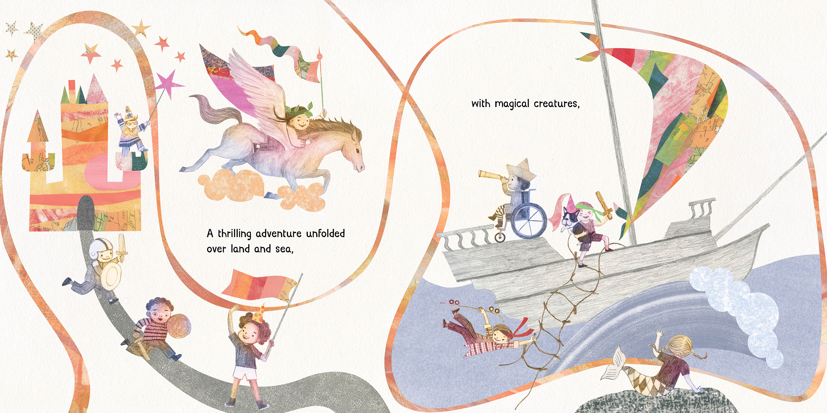The kids follow this path of creativity, until finally it's nighttime and they think nothing more could possibly happen. But something does: their minds continue to create fantastical possibilities in their dreams.