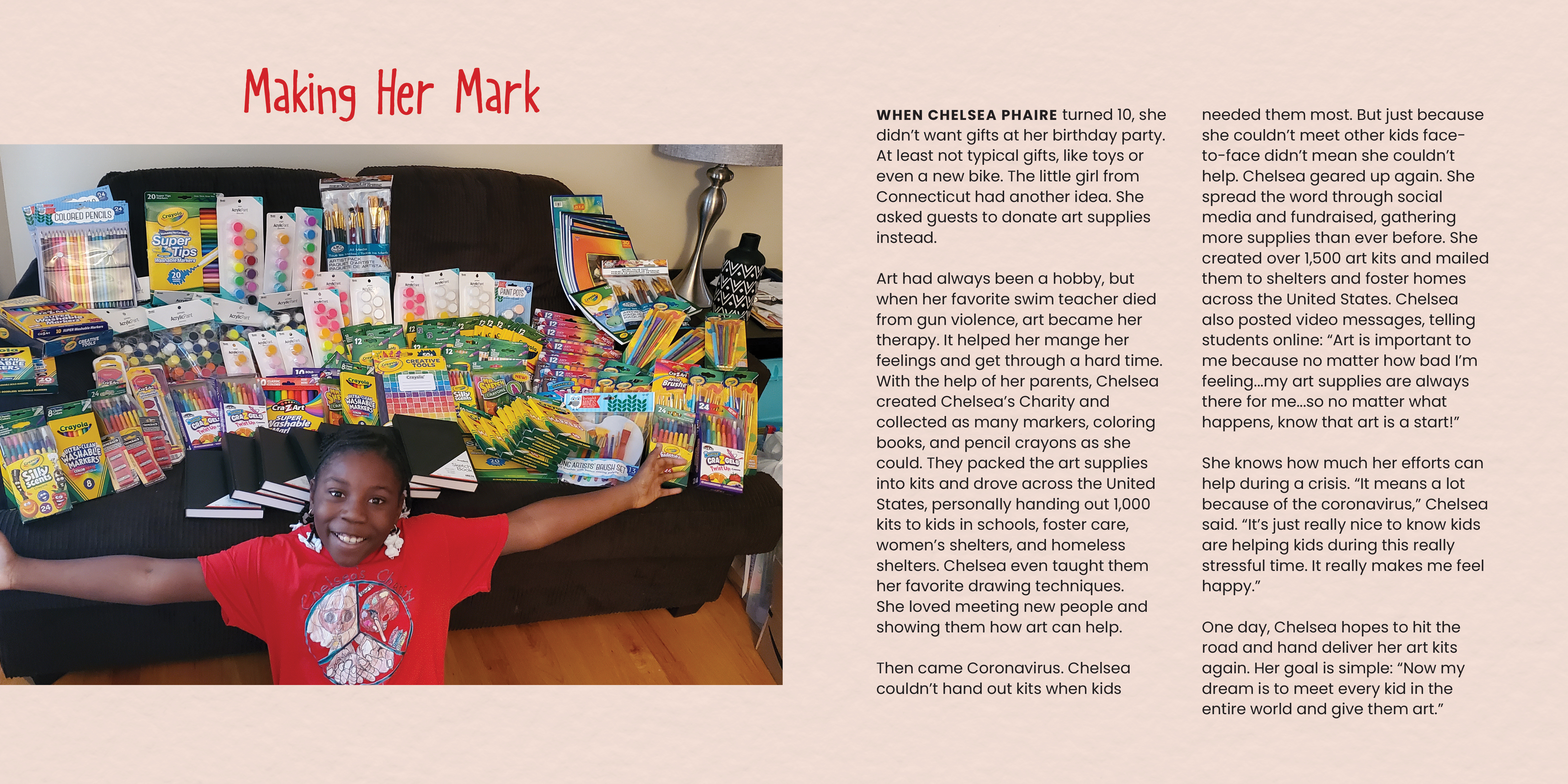 In the spring of 2020, the Covid-19 virus changed the world and made daily life much more challenging. We had to stay apart, away from work, school, and our normal routines. But, all around the world, kids came up with creative and thoughtful ways to help others. From making 3-D printed medical equipment to food bank fundraising to a neighbourhood joke stand, to creating a semi-automatic hand-washing machine, kids made a difference in their communities. Let's celebrate and take inspiration from their stories.