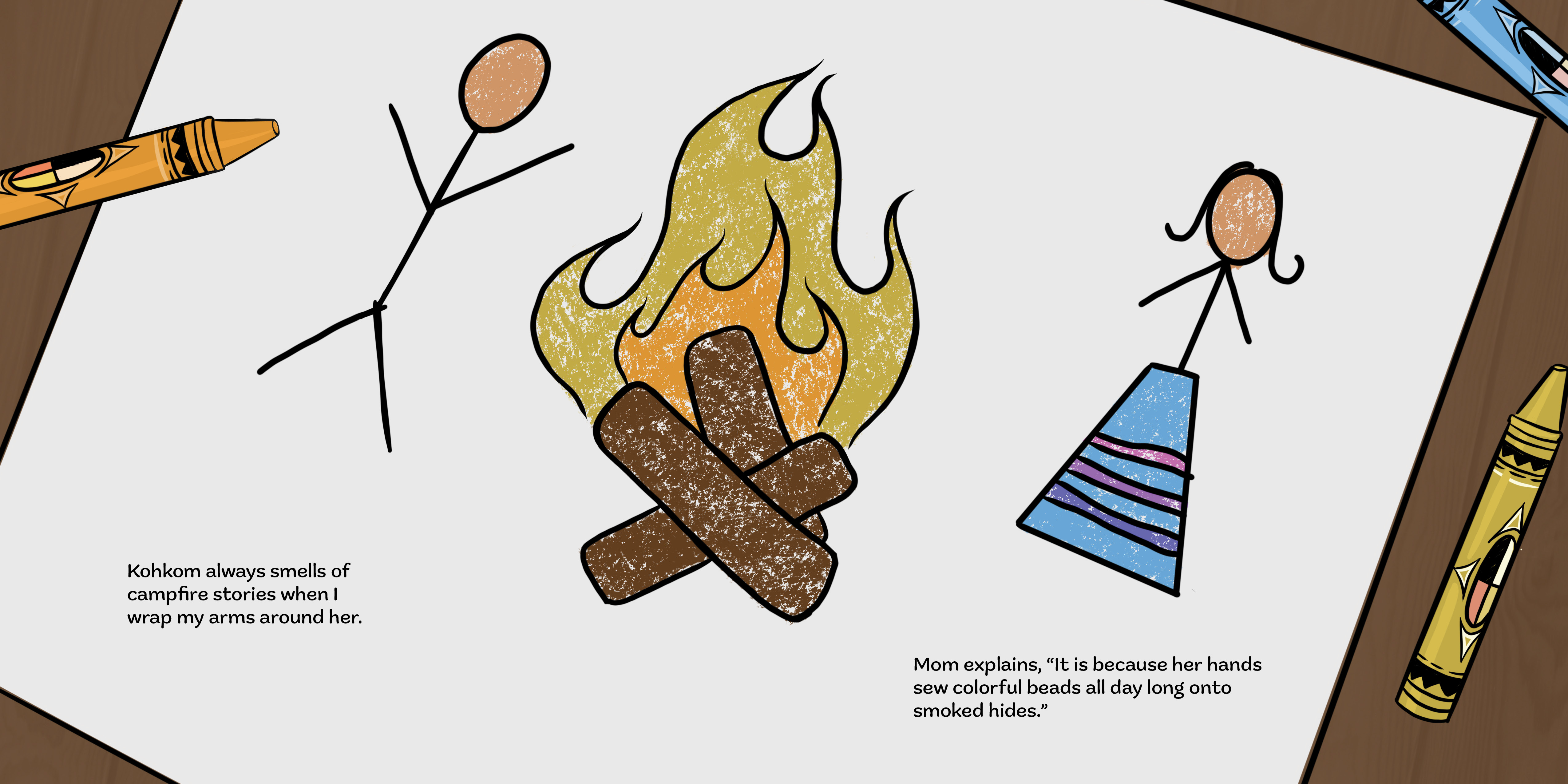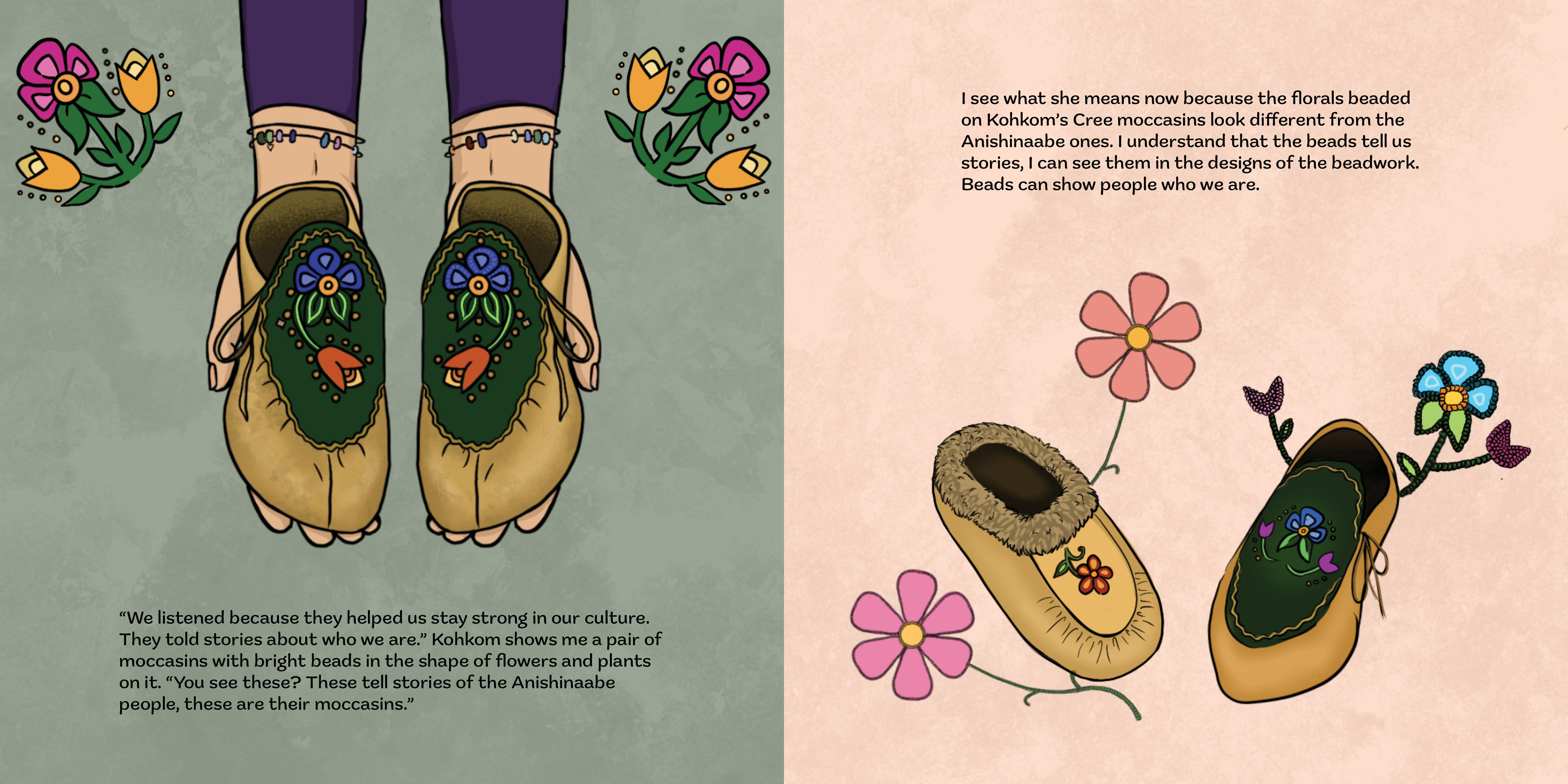Tessa loves how her grandmother always smells of campfire stories. Mom says it’s because Kohkom spends her days sewing beautiful beads onto smoked hides. Inspired, Tessa asks Kohkom to teach her beading, but first she must listen and learn about the many stories held in a bead.