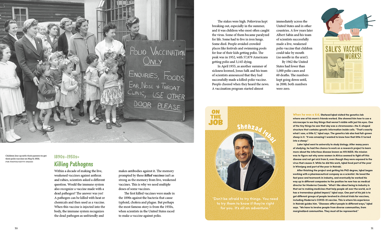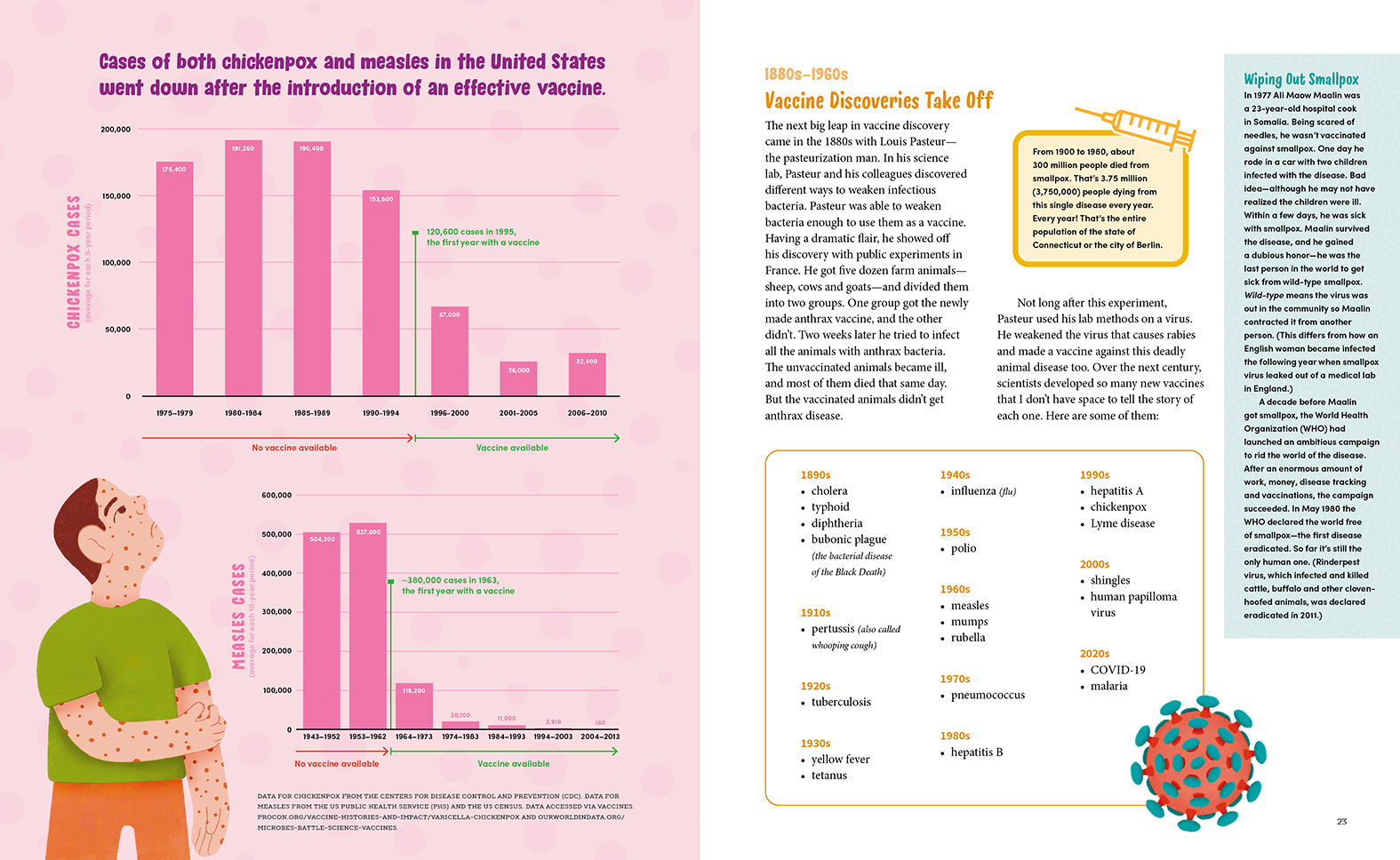 Although an earlier form of protection against infectious diseases has been practiced for a long time, vaccines have only been around for 200 years. Why We Need Vaccines explores the history of vaccine discovery, the science of how vaccines work and the public-health achievements that vaccines have made possible. It also discusses vaccine mandates and inequality in access to vaccines on local and global scales. It challenges young readers to take responsibility for themselves, their families and their communities so we can all be part of the solution to take down infectious diseases.