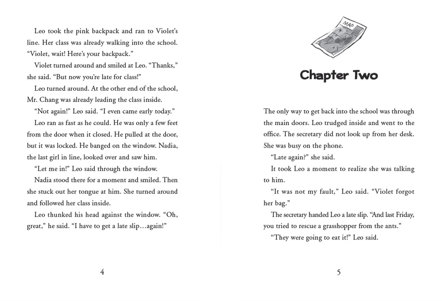 But explorers sometimes get sidetracked, which can lead to getting in trouble. When Leo’s teacher, Mr. Chang, announces he’ll be giving out an award for responsibility, Leo is determined to redeem himself. The upcoming class field trip to the woods seems like the perfect opportunity. He’ll get to use his handy compass watch and show Mr. Chang he can be extra-responsible! But when two of Leo’s classmates wander out of bounds, Leo is faced with a tough decision.